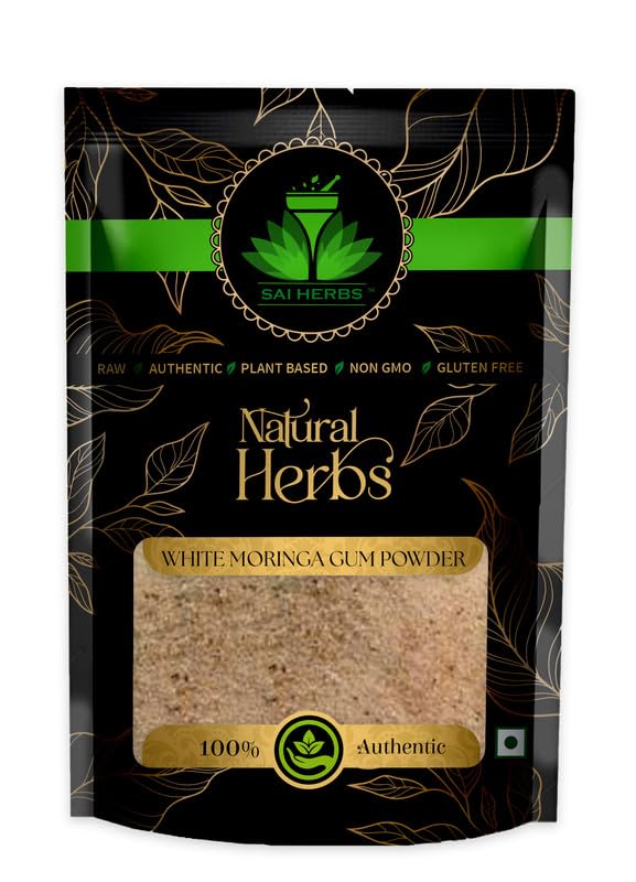 SAI HERBS White Moringa Gum Unani Powder – Safed Moringa Gond Unani Powder – Lab Tested – Treats Digestion – Skin and Hair Problems – Sahajan Gond Unani Powder – Gond Sonjana Unani Powder – Pure & Natural